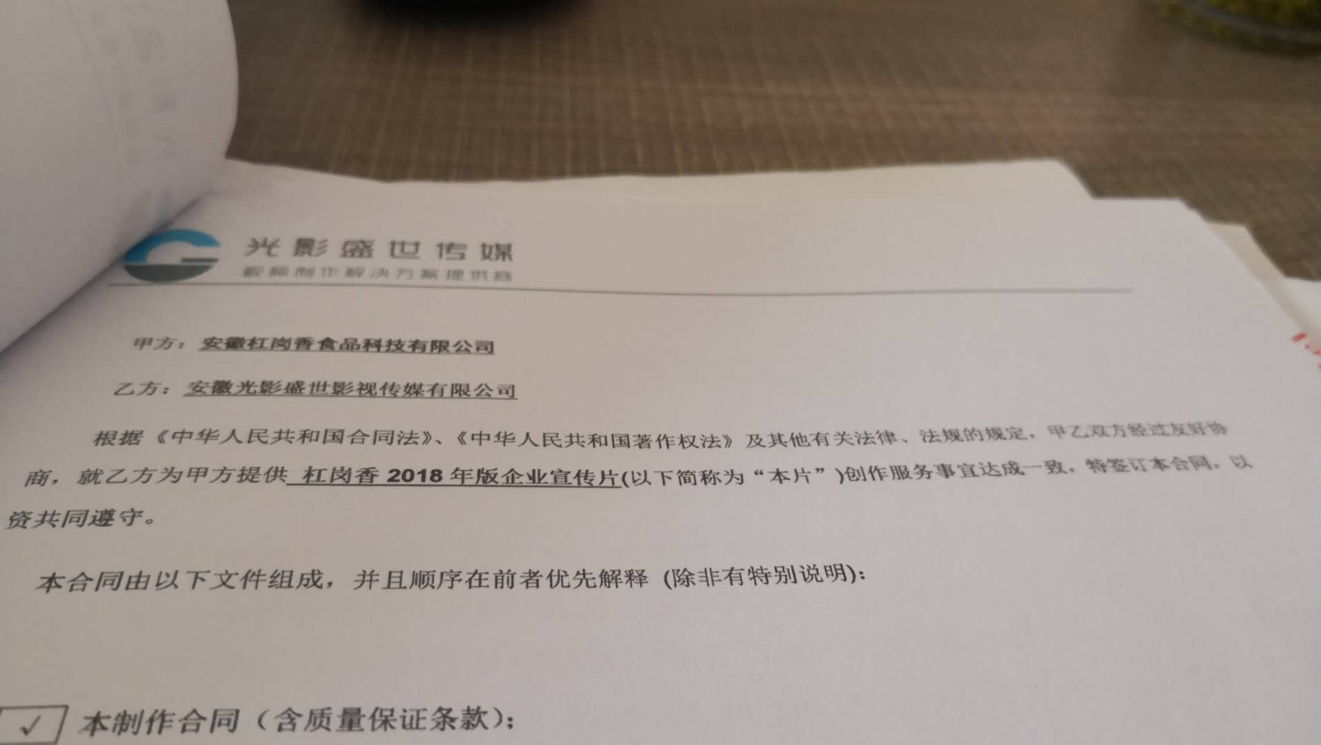 祝賀我司光影盛世簽約安徽杠崗香食品科技有限公司形象宣傳片,成為其視頻制作供應(yīng)商!感謝客戶的認(rèn)可!