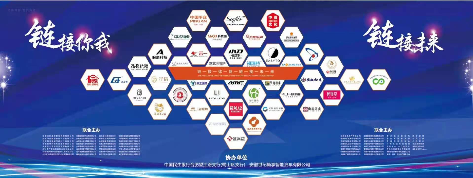 2020年年12月31日,主題為《鏈接你我,鏈接未來(lái)》的2021跨年之夜“資源對(duì)接交流會(huì)”在安徽合肥開(kāi)幕,此次大會(huì)由中國(guó)民生銀行合肥望江路支行(蜀山區(qū)支行)與安徽世紀(jì)暢想智能泊車(chē)有限公司協(xié)辦,我司負(fù)責(zé)人胡必升、殷康培參會(huì),此次大會(huì)的開(kāi)展
